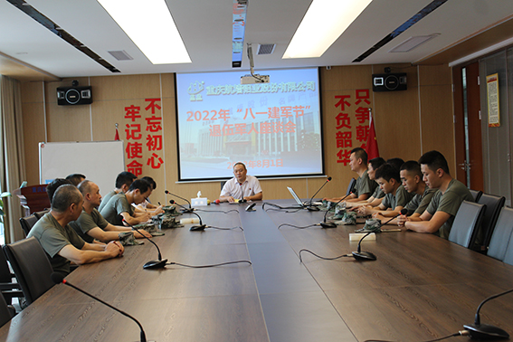 當天下午,公司董事長、總經理藺勇,總經理助理、工會主席毛友銀和全體退伍老兵在會議室召開了“退伍軍人座談會”。