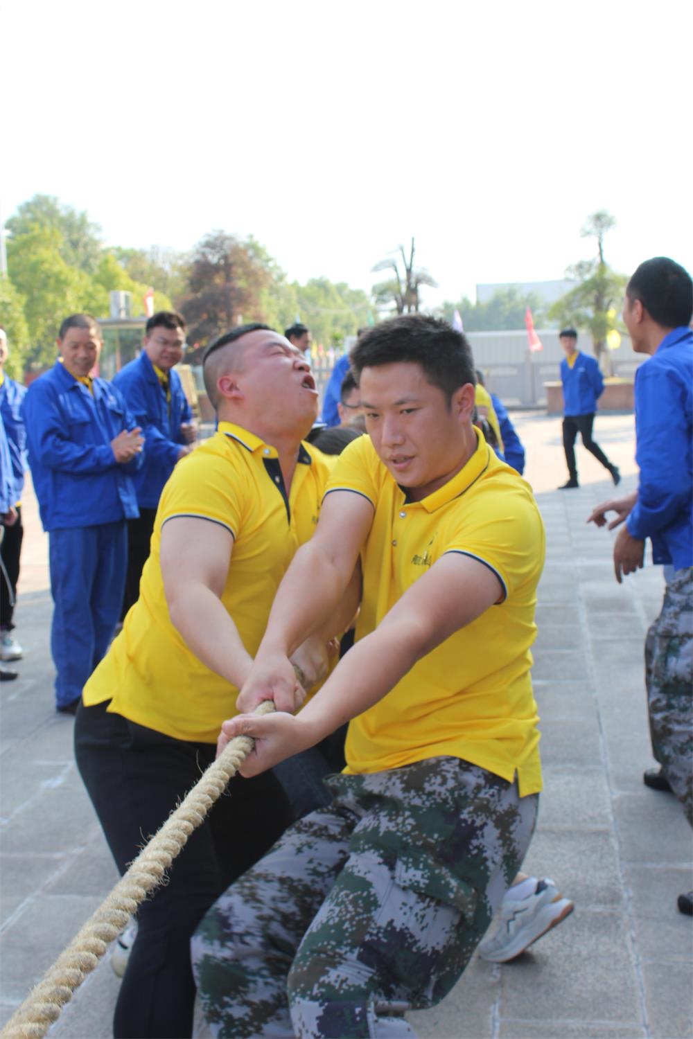 “拔河”比賽時(shí),每名運(yùn)動員都齊心合力,真正做到了心往一處想,勁往一處使。