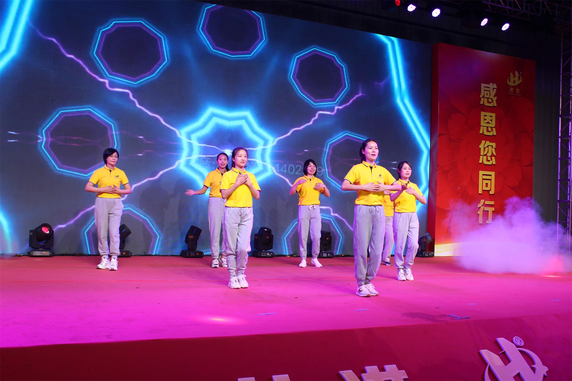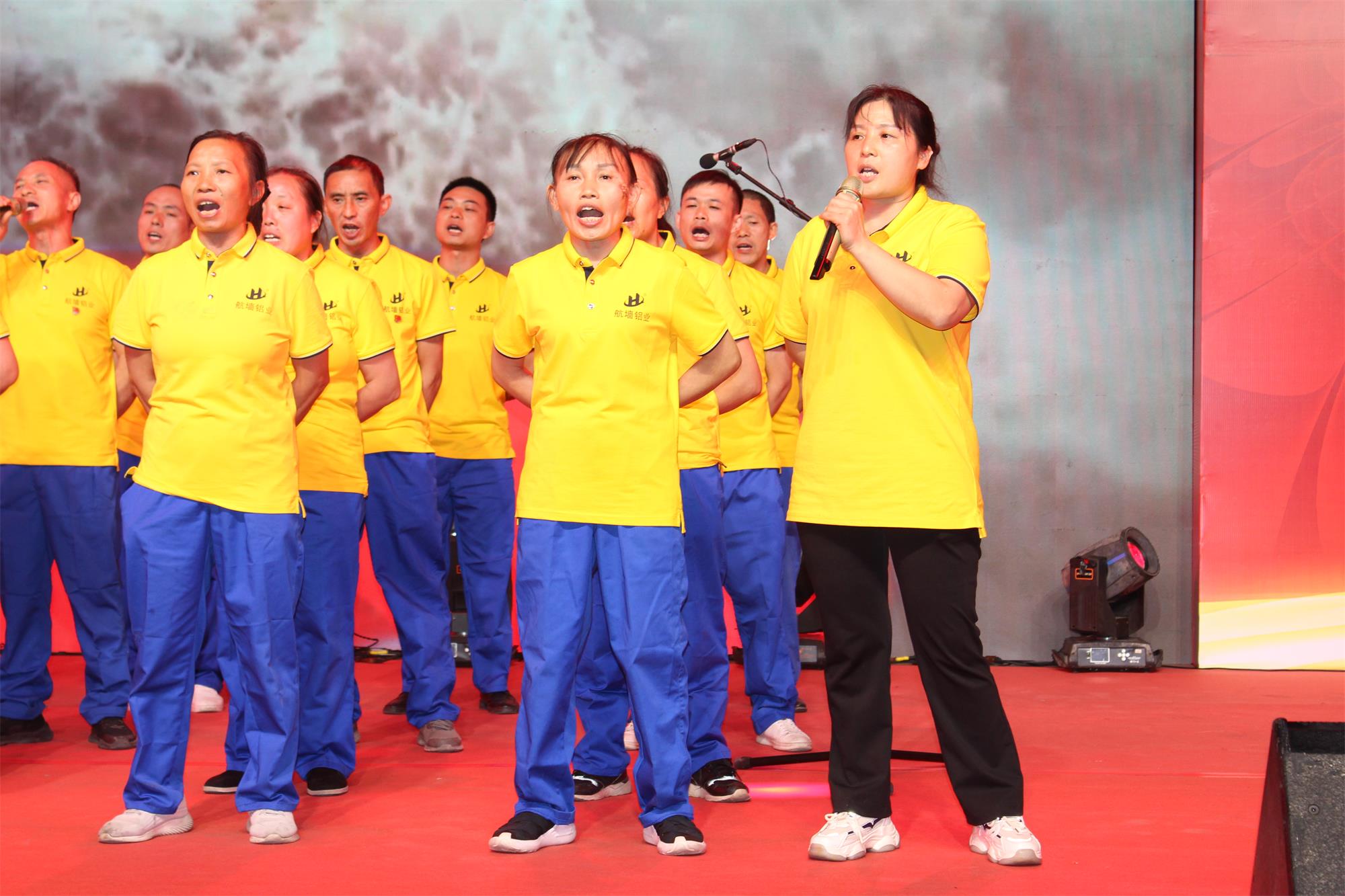 當(dāng)響起《歌唱祖國》的音樂時(shí),全場所有人員一起放聲高歌和舞臺上員工聲情并茂的表演,充分表達(dá)了航墻人對祖國的熱愛。