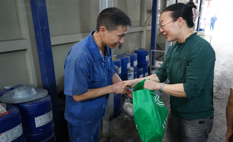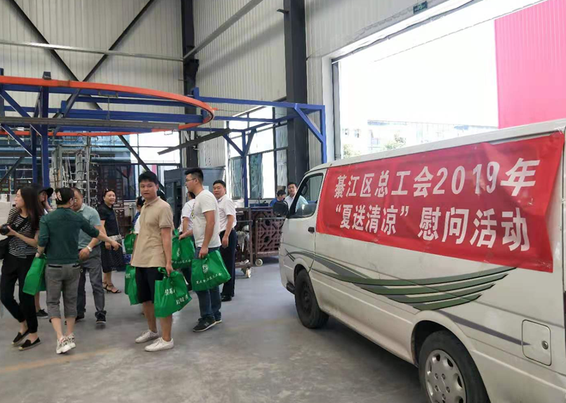 職工們激動地說:總工會真好!總工會的領導真好!噴房里溫度那么高,沒想到領導們把禮物送到里面來看我們,真的太感謝了!包裝組的姐妹們拿到禮物,開心的笑著,談論著:“工會是我們的娘家人,今天娘家人來看我們啦,還給我們送來了西瓜、綠豆、冰糖、防暑藥品,我們好幸福哦!”